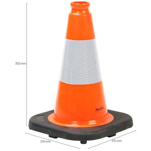 | Nombre del producto | Cono de balizado con 1 banda reflectante, Color: Anaranjado fluorescente, Altura: 300 mm, Longitud: 215 mm |