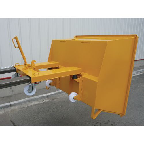 Contenedor autobasculante de altura reducida sobre ruedas, Capacidad: 690 L, Material: Acero, Color: Amarillo
