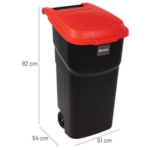 | Nombre del producto | Contenedor con tapa rojo de 100 L, Capacidad: 100 L, Abertura: Frontal, Material: Plástico |