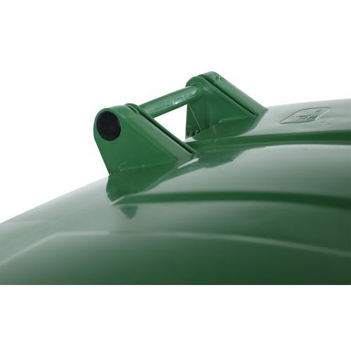 Contenedor de residuos Manutan de polietileno de alta densidad (PEAD) estabilizado contra los rayos UV. Fácil de manejar gracias a sus 4 ruedas giratorias (Ø 200 mm), 2 de ellas con freno. Asas en 3 lados para mayor maniobrabilidad. Fácil de limpiar.