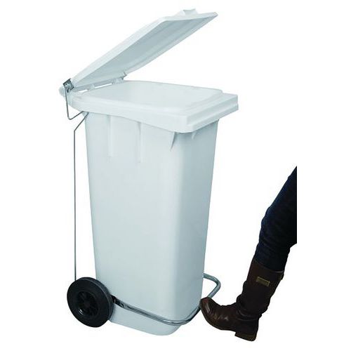 | Nombre del producto | Contenedor móvil con pedal EN840, Capacidad: 120 L, Abertura: Con pedal, Material: Plástico, Color: Blanco |