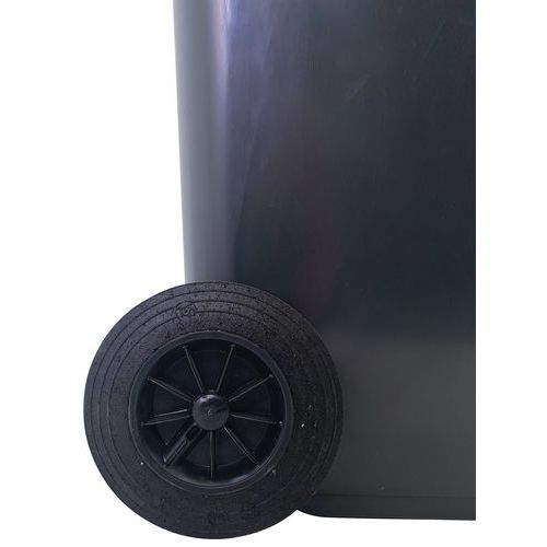 Contenedor resistente a los rayos UV. Desplazamiento sencillo del contenedor gracias a 2 ruedas sólidas. Mantenimiento fácil del contenedor gracias a su superficie de plástico lisa. Tapa de colores diferentes para facilitar la separación de residuos. El contenedor está destinado a un uso en exterior