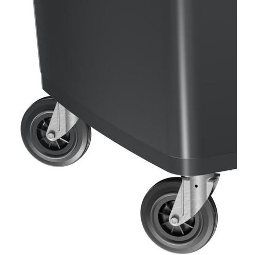 Gracias a sus cuatro ruedas pivotantes y a su doble asa en la parte delantera, este contenedor puede desplazarse fácilmente.