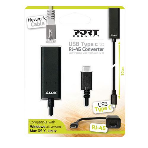| Nombre del producto | Conversor tipo C a RJ-45, Cable longitud: 30 cm, Ref. Fabricante: 900126, Selección teletrabajo: sí |