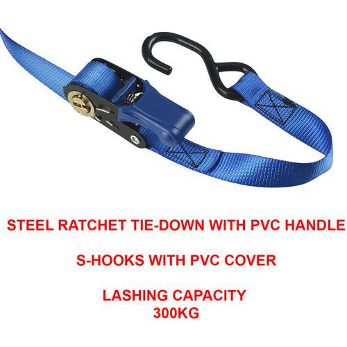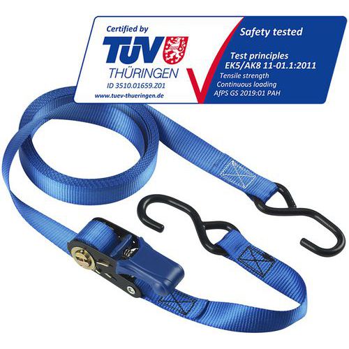 | Nombre del producto | Correa de trinquete Master Eco, Longitud: 5000 mm, CMU: 300 kg, Ancho: 25 mm, Color: Azul |