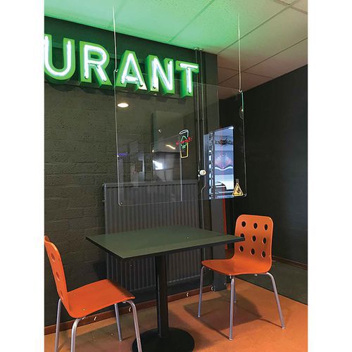 | Nombre del producto | Pantalla de protección colgable, Altura: 65 cm, Panel color: Transparente, Ancho: 140 cm, Panel material: PVC |