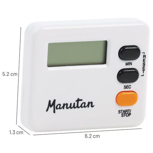 | Nombre del producto | Cronómetro/cuenta atrás Blanco, Longitud: 5.2 cm, Ancho: 6.2 cm, Espesor: 1.3 cm, Pila incluida.: sí |