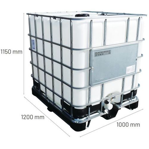 | Nombre del producto | Cuba de transporte de 1000 L unicubo según el estándar + palé, Capacidad: 1000 L, Altura total: 1150 mm |