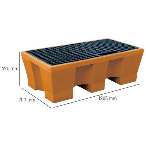 | Nombre del producto | Cubeta colectora, Capacidad de retención: 240 L, Color: Anaranjado, Capacidad (n.º de barriles): 2 |