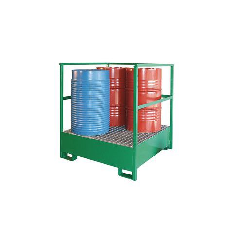Excelente resistencia a la corrosión. Estanquidad garantizada gracias a soldaduras probadas en la fábrica por exudado. Cubeta colectora apilable. Se pueden agarrar por los 4 lados. Posibilidad de transportar en vacío. Color verde de RAL 6029.