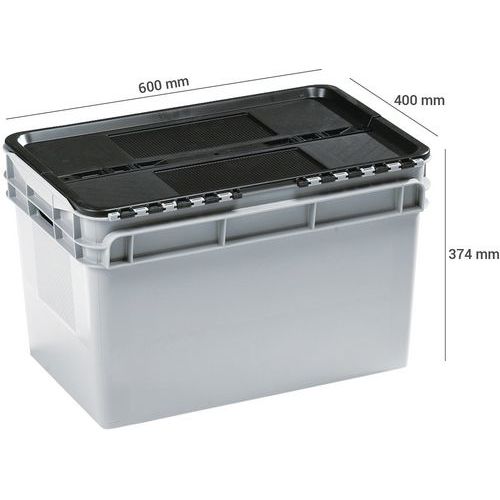| Nombre del producto | Cubeta estándar con tapa integrada, Capacidad: 60 L, Altura total: 374 mm, Anchura total: 400 mm |