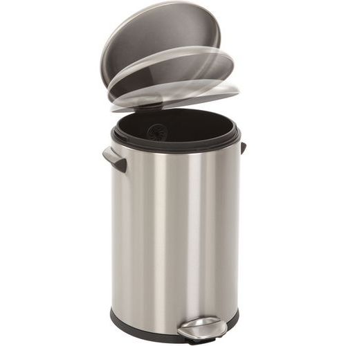 Cubo de basura con pedal Look Retro provista de asas de diseño con tapa abombada. Revestimiento de plástico y cierre silencioso.