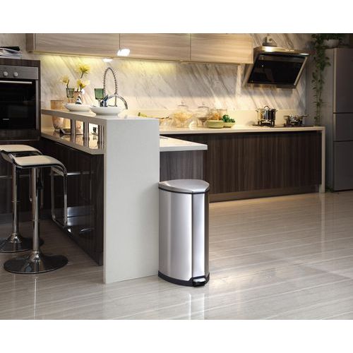 | Nombre del producto | Cubo de basura con pedal de acero inoxidable mate, Capacidad: 35 L, Abertura: Con pedal, Material: Metal |