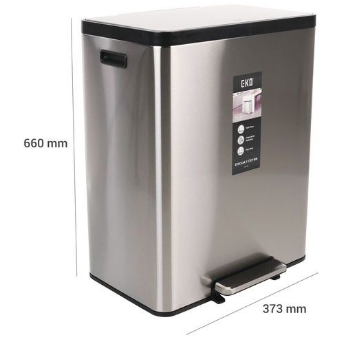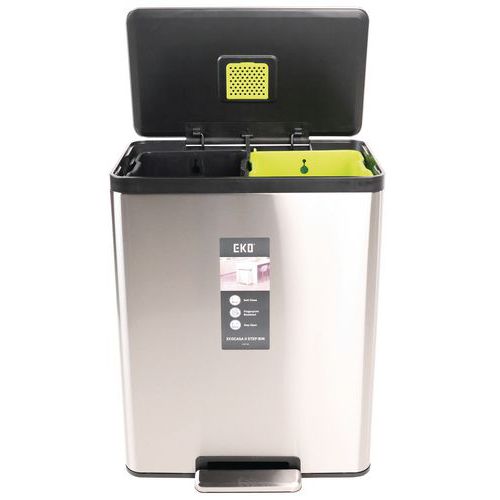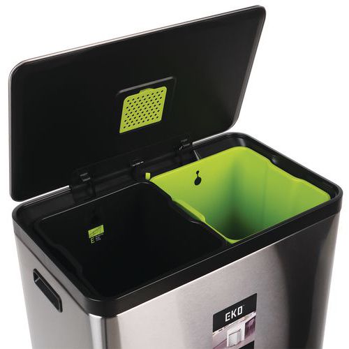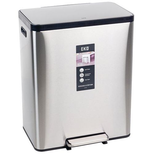 Cubo de basura con pedal para la recogida selectiva EcoCasa II 30+30 L, EKO, Capacidad: 60 L
