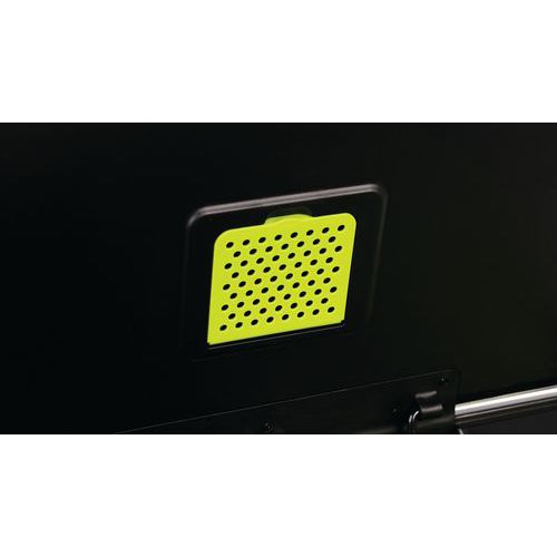 Equipado con una tapa soft closing de cierre suave con filtro de olores integrado y dos contenedores (2 x 30 L) de material sintético para la recogida selectiva.
