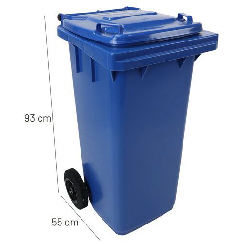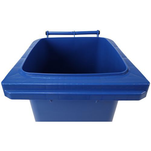 Contenedor de basura práctico y fácil de manejar gracias a sus asas y ruedas sólidas. Varios colores disponibles para facilitar la separación de residuos y la identificación del contenido. Ruedas macizas de 200 mm de diámetro. Fabricado en polietileno de alta densidad de primera calidad. Resistente a los rayos UV y a los golpes. Contenedor resistente a agentes químicos y protegido de insectos nocivos. No absorbe líquidos y es lavable y esterilizable.