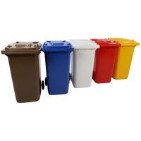 Contenedor de basura práctico y fácil de manejar gracias a sus asas y ruedas sólidas. Varios colores disponibles para facilitar la separación de residuos y la identificación del contenido. Ruedas macizas de 200 mm de diámetro. Fabricado en polietileno de alta densidad de primera calidad. Resistente a los rayos UV y a los golpes. Contenedor resistente a agentes químicos y protegido de insectos nocivos. No absorbe líquidos y es lavable y esterilizable.