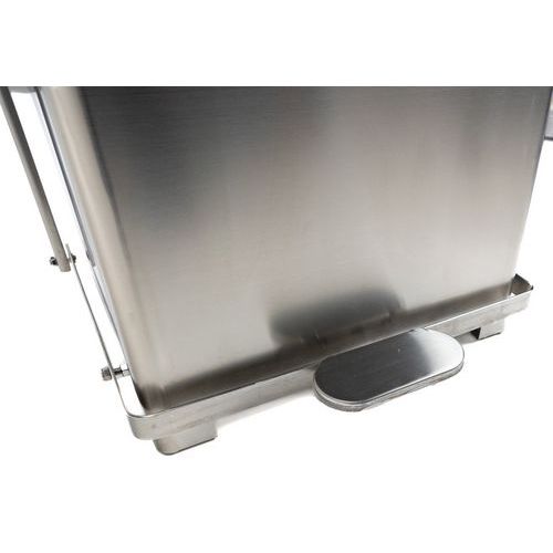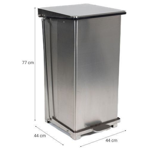 Esta papelera industrial con pedal, robusta y elegante, está disponible en dos tamaños: 90 y 45 litros. Su tapa accionada por pedal cuenta con un sistema de cierre progresivo y amortiguado. La papelera de acero inoxidable incorpora un soporte para bolsas. La papelera con pedal queda fija en la base. La papelera con pedal, que está fabricada en acero inoxidable, es duradera y fácil de limpiar. Ideal para cocinas profesionales, zonas de restauración al aire libre y lugares de producción de alimentos. Garantía de 10 años. Nuestros equipos han probado y aprobado todos los productos de Manutan.