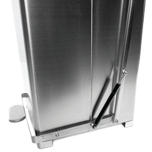 Esta robusta papelera de acero inoxidable se abre mediante un pedal y es resistente al fuego y a la...