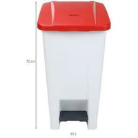 Cubo de basura móvil manejable gracias a estas 2 ruedas lisas y su asa de transporte. Clasificación selectiva gracias a tapas de colores. Fácil de limpiar y pedal grande. Fabricado en la UE HACCP Garantía al cliente : 10 años