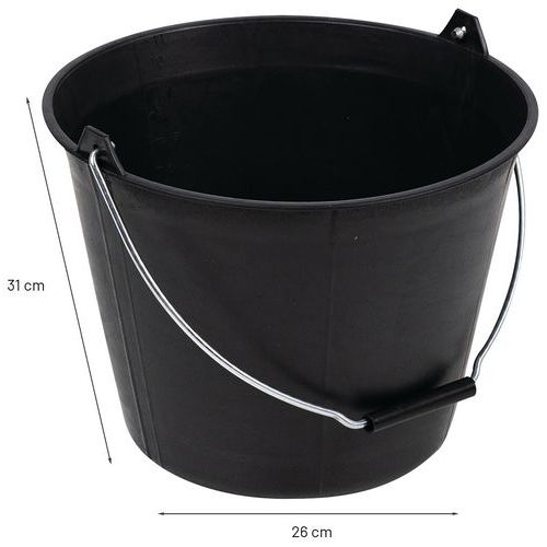 | Nombre del producto | Cubo de plástico negro de 11 L, Capacidad: 11 L, Material: Plástico, Longitud total: 31 cm |