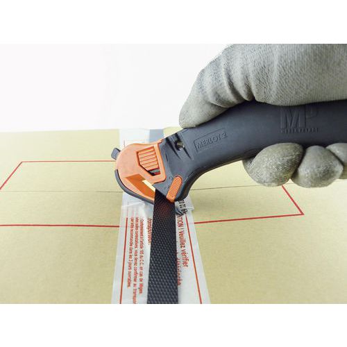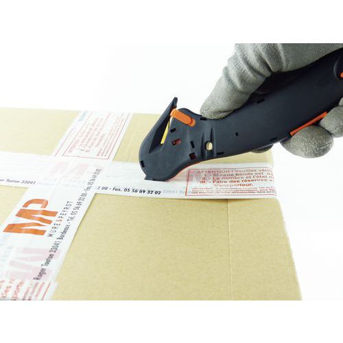 Gracias a su lengüeta de plástico en la parte delantera, permite rasgar los adhesivos de embalaje.