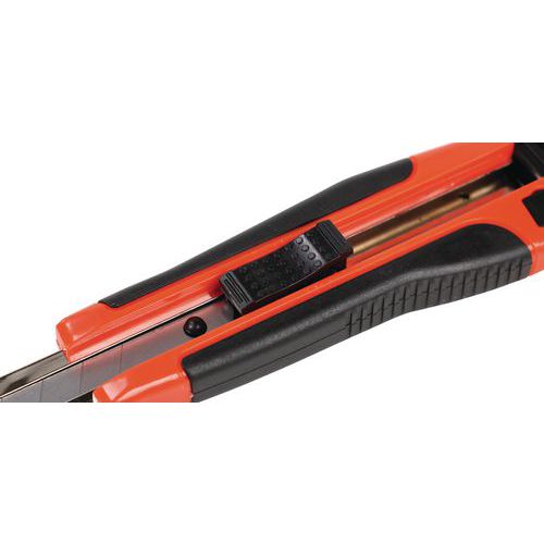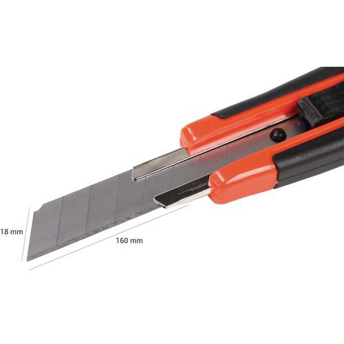 | Nombre del producto | Cúter bimaterial con hoja de 18 mm, Cuchilla retráctil.: sí, Hoja longitud: 160 mm, Cuchilla anchura: 18 mm |