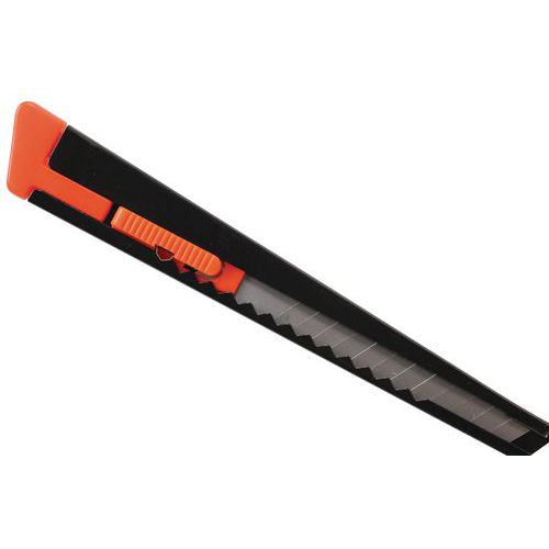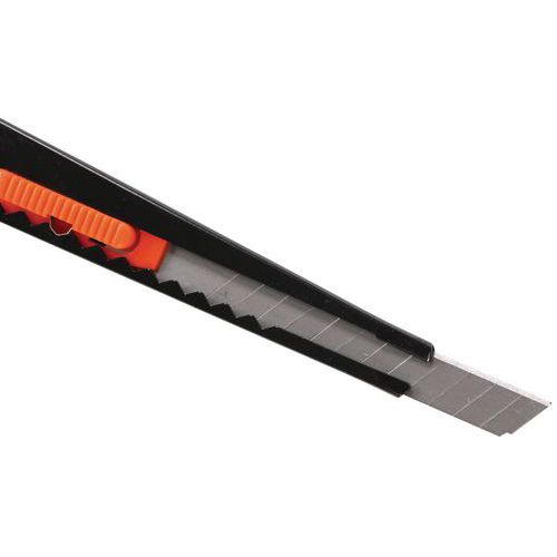 | Nombre del producto | Cúter con hoja divisible 9 mm, Cuchilla retráctil.: sí, Hoja longitud: 140 mm, Cuchilla anchura: 9 mm |