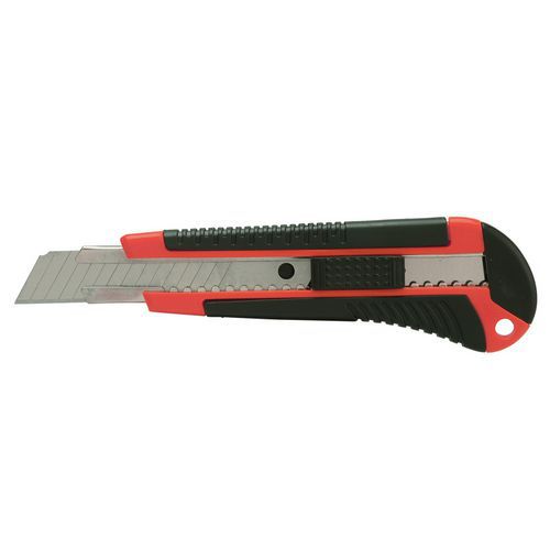 Cúter de plástico bimaterial con botón pulsador autoblocante - Sign