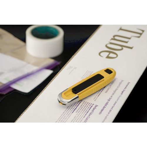 | Nombre del producto | Cúter de seguridad SK-8, Cuchilla retráctil.: sí, Color: Amarillo, Alimentario: no, Cuerpo material: Plástico |