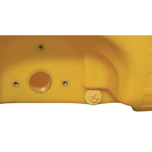 Depósito compacto de polietileno alimentario, con centro de gravedad bajo. Orificio de acceso ø 380 mm con tapa montada con bisagras y moldura interior rompeolas. Patas integradas para la fijación directa sobre el chasis o la plataforma de un vehículo mediante correas. Depósito de polietileno alimentario con indicador de nivel óptico graduado, grabado en la masa. Carga máxima de 1,2 kg/dm³. Vaciado total con rosca de 1'’ 1/4 con tapón. Vaciado más alto con rosca de 2 + insertos moldeados para brida inoxidable. Cuba de 2000 L: 2 vaciados laterales perforados de 2 adicionales.