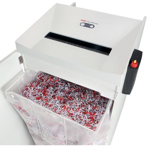 De diseño y silencioso, el destructor con corte cruzado destruye en partículas hasta 27 hojas por pasada.