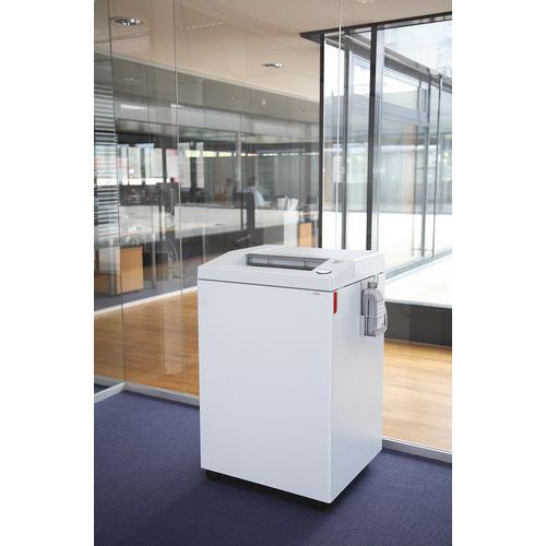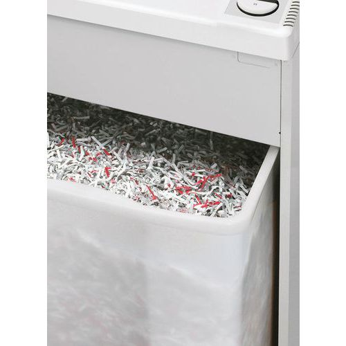 Gran entrada de alimentación para grandes formatos y formularios de varias hojas. Doble seguridad del motor contra sobrecalentamiento, cuchillas de calidad superior de acero templado. Puesta en marcha/apagado automáticos y parada automática cuando la bolsa de recogida está llena. Retorno y bloqueo automáticos (evita los atascos de papel). Destruye también CD, DVD, tarjetas de crédito y grapas. Con Safety Protection System: tapa abatible con control electrónico y corte de alimentación como elemento de seguridad complementario. Conmutador de selección múltiple Easy Switch con mando integrado que dispone de colores y símbolos luminosos. Consumo eléctrico reducido y puesta en marcha/parada automáticos mediante célula fotoeléctrica. Inyección automática de aceite en las cuchillas durante el proceso.