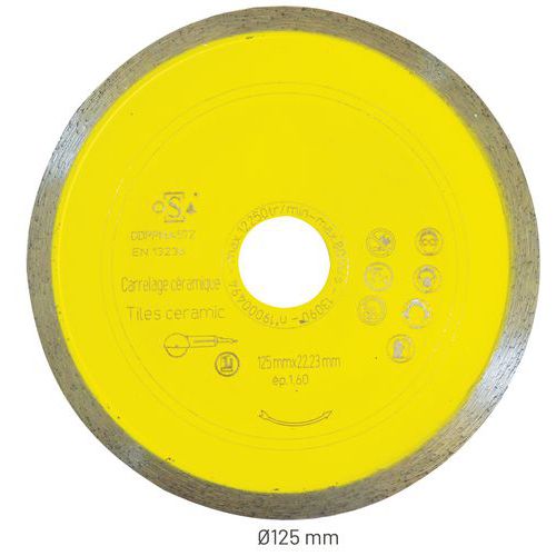 | Nombre del producto | Disco de corte para baldosas, Orificio Ø: 22.23 mm, Ø: 125 mm, Para material: Baldosas, Utilización: Corte |