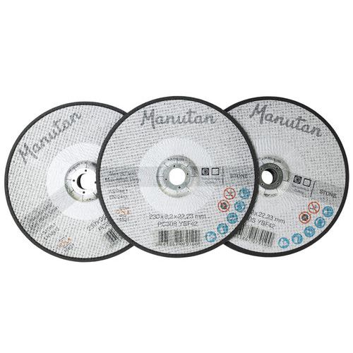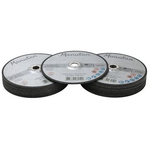 Disco de corte plano para todo tipo de materiales – Manutan – Manutan Expert Disco de corte reforzado para corte o desbaste de metales y materiales con máquinas portátiles o fijas. Fabricado con abrasivos y aglutinantes adaptados para obtener cortes rápidos y eficientes.