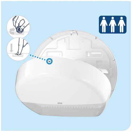 | Nombre del producto | Dispensador de papel higiénico Tork T1 – Maxi Jumbo, Color: Blanco, Altura: 36.8 cm, Ancho: 13.9 cm |