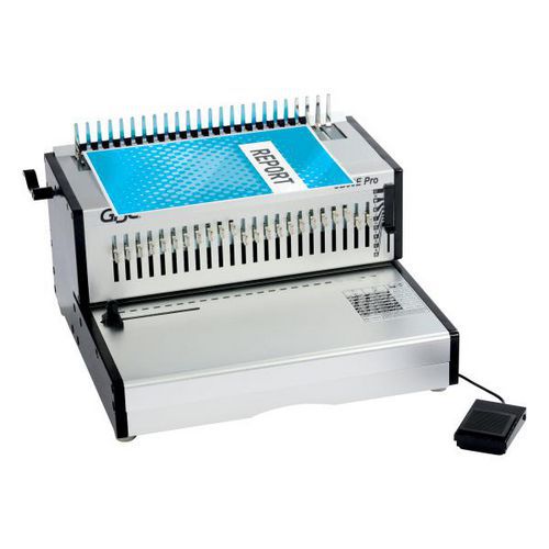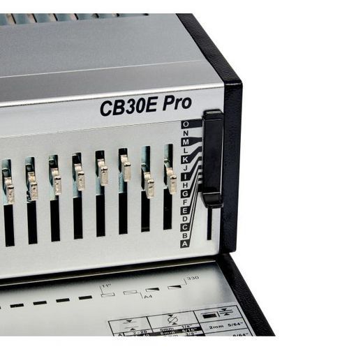 La encuadernadora eléctrica CB30E Pro perfora hasta 25 hojas sin esfuerzo gracias a su potente motor eléctrico. Encuaderna hasta 500 hojas con peines de plástico de 51 mm, ideal para grandes volúmenes y presentaciones profesionales. Comodidad de uso manos libres: incluye pedal para accionar la perforación, lo que mejora la productividad y la comodidad. Punzones ajustables y profundidad de margen regulable que permiten una encuadernación precisa y adaptada a distintos formatos. Diseño robusto y práctico con carcasa metálica resistente, bandeja de residuos de gran capacidad y carga horizontal para mayor eficiencia.