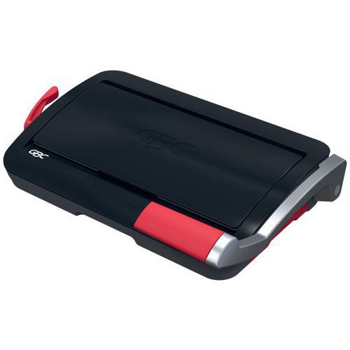 La encuadernadora manual CombBind® CB12 perfora hasta 12 hojas de 80 g/m2 sin esfuerzo y conecta hasta 195 hojas con un peine de 19 mm. Compacta y ligera, fácil de transportar y guardar, se adapta perfectamente a espacios de trabajo pequeños o en casa. Encuadernadora con diseño sencillo y fácil de usar. Diseño elegante y profesional, moderno acabado en negro y plata que combina con cualquier entorno de oficina.