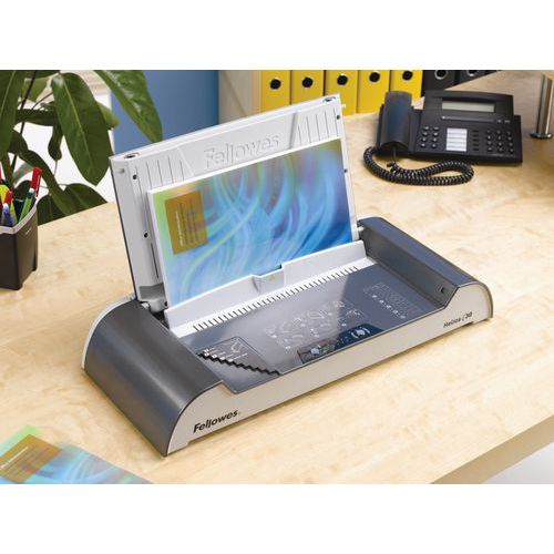 | Nombre del producto | Encuadernadora térmica Fellowes, Longitud: 24 cm, Ancho: 53 cm, Altura: 10 cm, Para formato: A4, Peso: 2.6 kg |