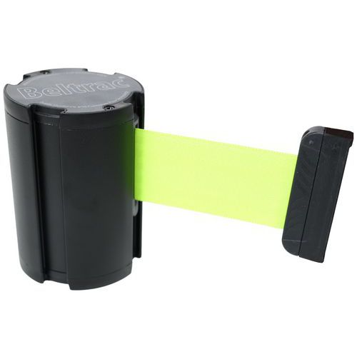 Enrollador mural con cinta para cerrar o impedir el acceso a una zona. Desmontaje suave gracias a las cintas autofrenadas. Solidez y fiabilidad de la fijación de la correa. Ideal para su uso en exteriores.