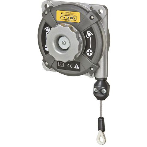 Equilibrador de carga Zeca con carcasa de aluminio moldeado. Ajuste continuo de la carga del valor máximo al mínimo. Longitud de cable fácilmente registrable para adaptarse a todas las necesidades. Cuatro puntos de suspensión y tres puntos de anclaje.