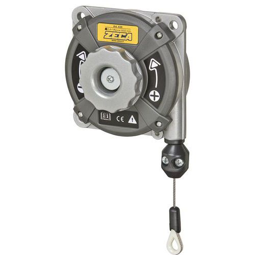 Equilibrador de carga Zeca con carcasa de aluminio moldeado. Ajuste continuo de la carga del valor máximo al mínimo. Longitud de cable fácilmente registrable para adaptarse a todas las necesidades. Cuatro puntos de suspensión y tres puntos de anclaje.