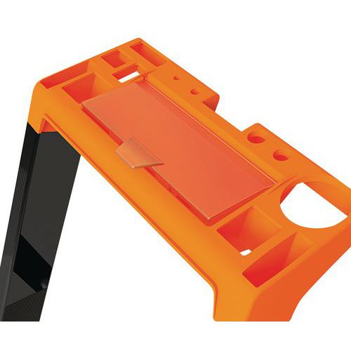 - Escabel extracómodo y seguro con amplia plataforma superior.