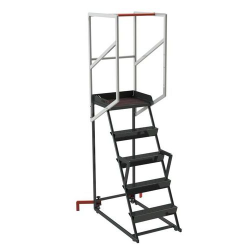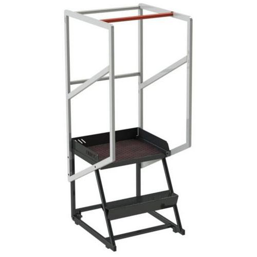 Escalera estrecha con ruedas y peldaños autoportantes y antideslizantes. Fiabilidad y gran seguridad, estructura totalmente mecanosoldada. Barandillas de seguridad, protección antideslizante y barra anticaída. Plataforma de chapa lagrimada antideslizante. Escalera con ruedas ligera, compacta y maniobrable. Ruedas delanteras que no dejan manchas. Altura de la barandilla 1 m. Fabricado en la UE Carga máx. (kg) : 150 Acabado : Epoxi