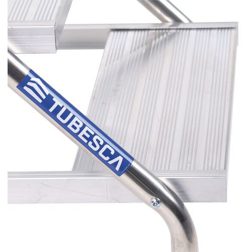 - Con peldaños amplios estriados, antideslizantes e intercambiables.
