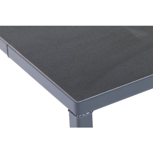 Escalera-plataforma de acero media altura. Patas roscadas para ajuste de altura deseado. Posición de altura fija mediante contratuercas. Bandeja de madera con revestimiento antideslizante. Carga máx. (kg) : 150 Garantía al cliente : 10 años