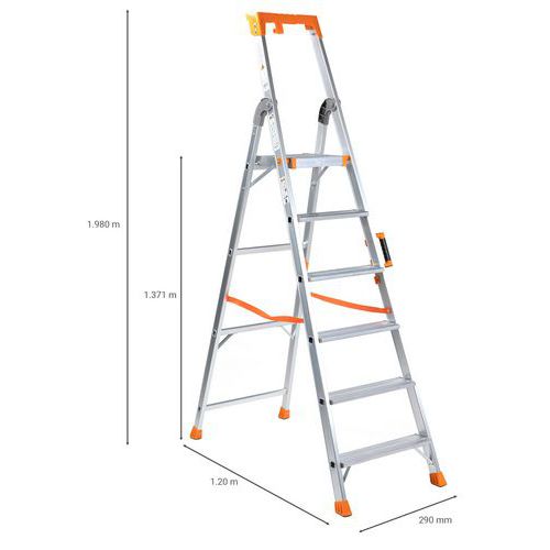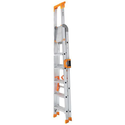 Balda portaobjetos multifunción. Perfiles reforzados de aluminio. Peldaños antideslizantes. Fácil de transportar y almacenar. Carga máx. (kg) : 150 kg Garantía al cliente : 10 años