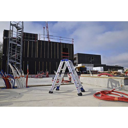 Peldaños doble acceso con perfiles amplios y sólidos de aluminio de diseño ergonómico. Acceso cómodo mediante peldaños antideslizantes de 80 mm soldados sobre grandes perfiles de aluminio. Articulaciones con tapa, antipilladedos. Autoestable en posición cerrada. Carga máx. (kg) : 150 kg Garantía al cliente : 5 años