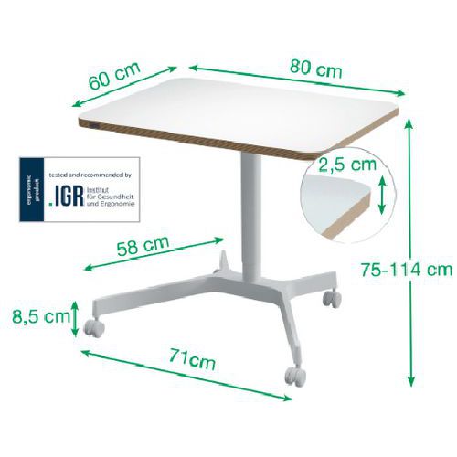 | Nombre del producto | Escritorio 60 x 80 cm, Tipo de patas: 2 patas, Anchura total: 80 cm, Tipo de escritorio: Escritorio recto |