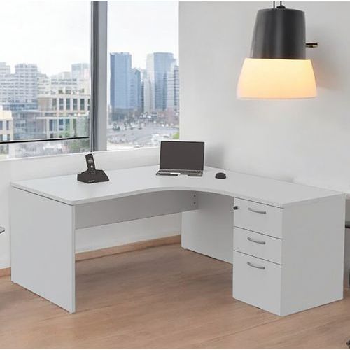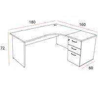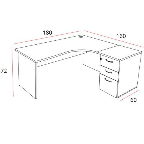 | Nombre del producto | Escritorio compacto con cajonera, Tipo de patas: Patas en L, Montaje: Para montar, Anchura total: 180 cm |